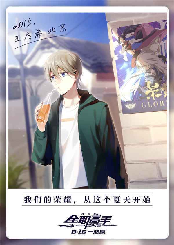 《全职高手》小说自诞生以来人气居高不下,原著中的各个角色皆形象鲜明,拥有大批粉丝,近日官方发布的“那一年”版海报中,韩文清自带气场,眼神里透露着坚定;张佳乐手握着一张荣耀赛事的传单,头顶蓝楹花瓣落下,画面美好安静;北京少年王杰希手握一瓶橘子汽水,胡同口的荣耀海报瞩目;位于广州的喻文州在地铁口出站,身后是赛事体育馆;出入青训营的黄少天一脸阳光,似是对所去之处充满期待;而周泽楷在上海的黄昏下,拖着下巴看着远方就自成一幅画。2015年时的叶修已经奔赴第一届职业联赛现场,2015年的高手们虽身处全国各地,但与“荣耀”的缘分早已开始,都在关注着这场赛事。