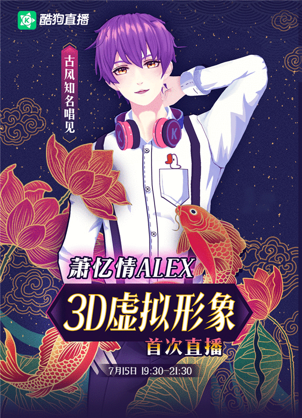 为了让粉丝能够“一解相思之苦”,萧忆情Alex特别准备了一个诚意十足的惊喜: 7月15日19:30以全新3D虚拟形象空降酷狗直播间。说起这个3D虚拟形象,相信对于萧忆情Alex的粉丝来说绝对不陌生。一头紫发加上旁边的“本体”小仙鹅,正是萧忆情Alex用了许久的卡通形象。