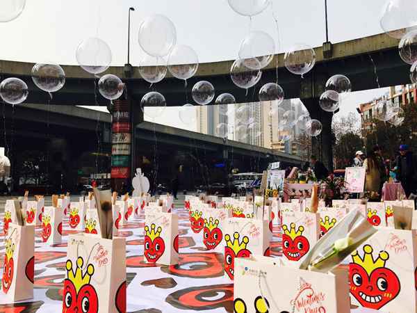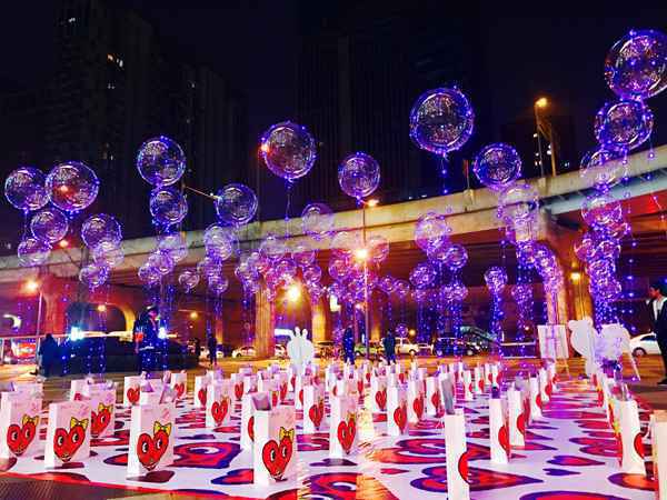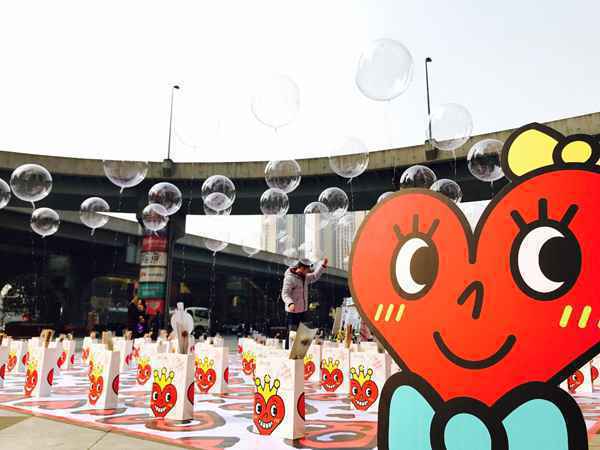 热闹的十字街口,远远可以看到‘ Happy Heart桃心’萌态可掬的笑脸。