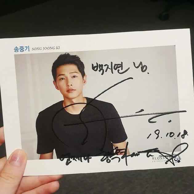 据路透,宋仲基10月18日现身为《阿斯达编年史》制作特效的公司,现场的工作人员分享了与宋仲基的合影和签名照,宋仲基的脸看上去肉肉的,似乎比之前胖了不少。他也曾在近日被偶遇和前辈一起去看话剧。