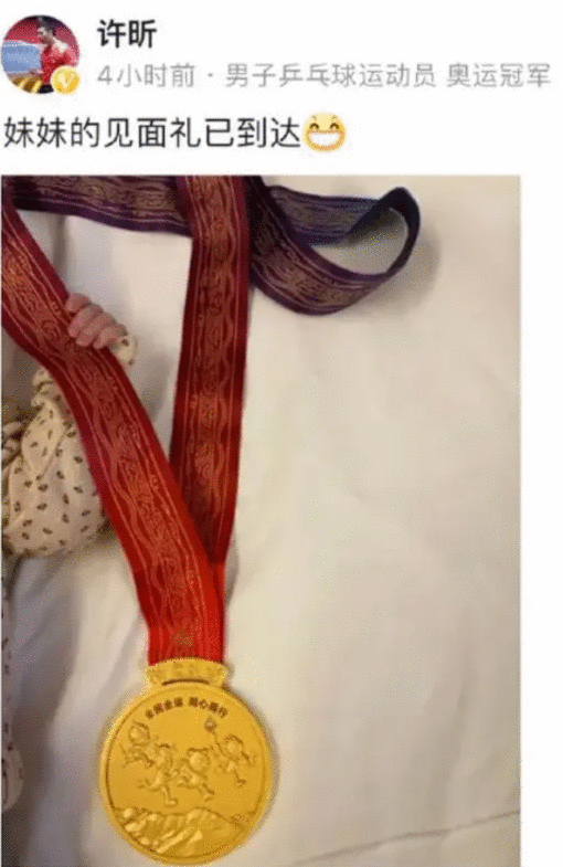 恭喜!许昕官宣老婆产二胎,晒女儿拿全运会金牌照