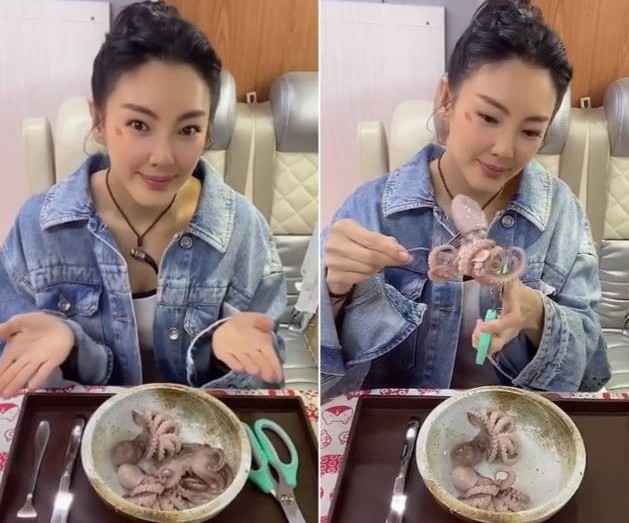 张雨绮表情非常微妙,“笑里藏刀”地将八爪鱼大卸八块,最后露出了得意的微笑。视频中还配上了《舌尖上的中国》的旁白,搞笑十足。