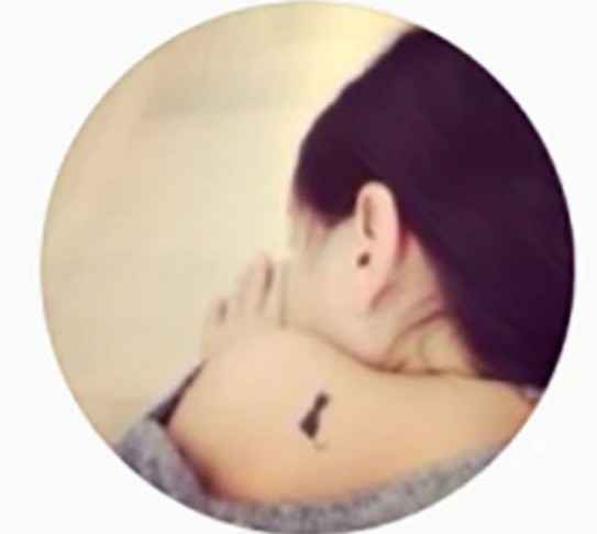 头像照片是一张李嫣的性感露背照,将肩膀耸起专门体现出骨感的她,肩膀上黑色的猫咪纹身备受关注。