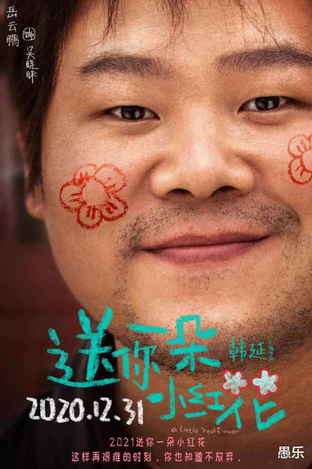 每一位主演的脸上都有一朵小红花,可小岳岳脸上却有两朵,在影片中岳云鹏是友情出演,想必戏份不多,而且从海报上看岳云鹏和夏雨一样,也是个有故事的人,这胡茬也太出戏了!岳云鹏给大家的印象是笑星,突然转变成这样忧郁的角色,一时有些无法适应,不知道在影片中岳云鹏是个什么样的角色?十分期待!而他的话是“送你一朵小红花,这样再艰难的时刻,你也不知道放弃”!