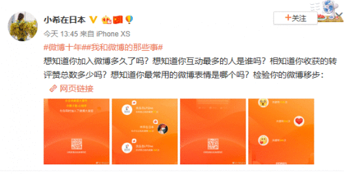 甚至还有来自海外的账号隔空分享,海外资讯博主@小希在日本发布微博分享十年微博最有纪念意义的时刻。