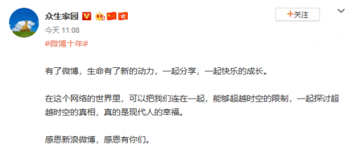 此外还有@延参法师,佛学博主@众生家园等分享十年微博感悟:感恩新浪微博,感恩有你们。