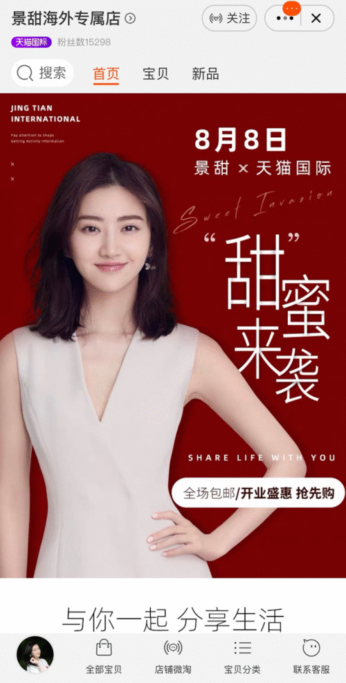 8月8日,景甜微博官宣,将要在天猫国际开一家小店,不到半小时就引发数万粉丝热议。作为国内炙手可热的大明星,景甜一直活跃在各类影视作品中,除了粉丝见面会、电影首映礼等互动渠道,粉丝们也希望能够有更多的渠道与景甜亲密接触,拥有一家自己的小店,直播、推荐自己的保养秘籍,无疑成为粉丝深度了解爱豆的又一绝佳场景。