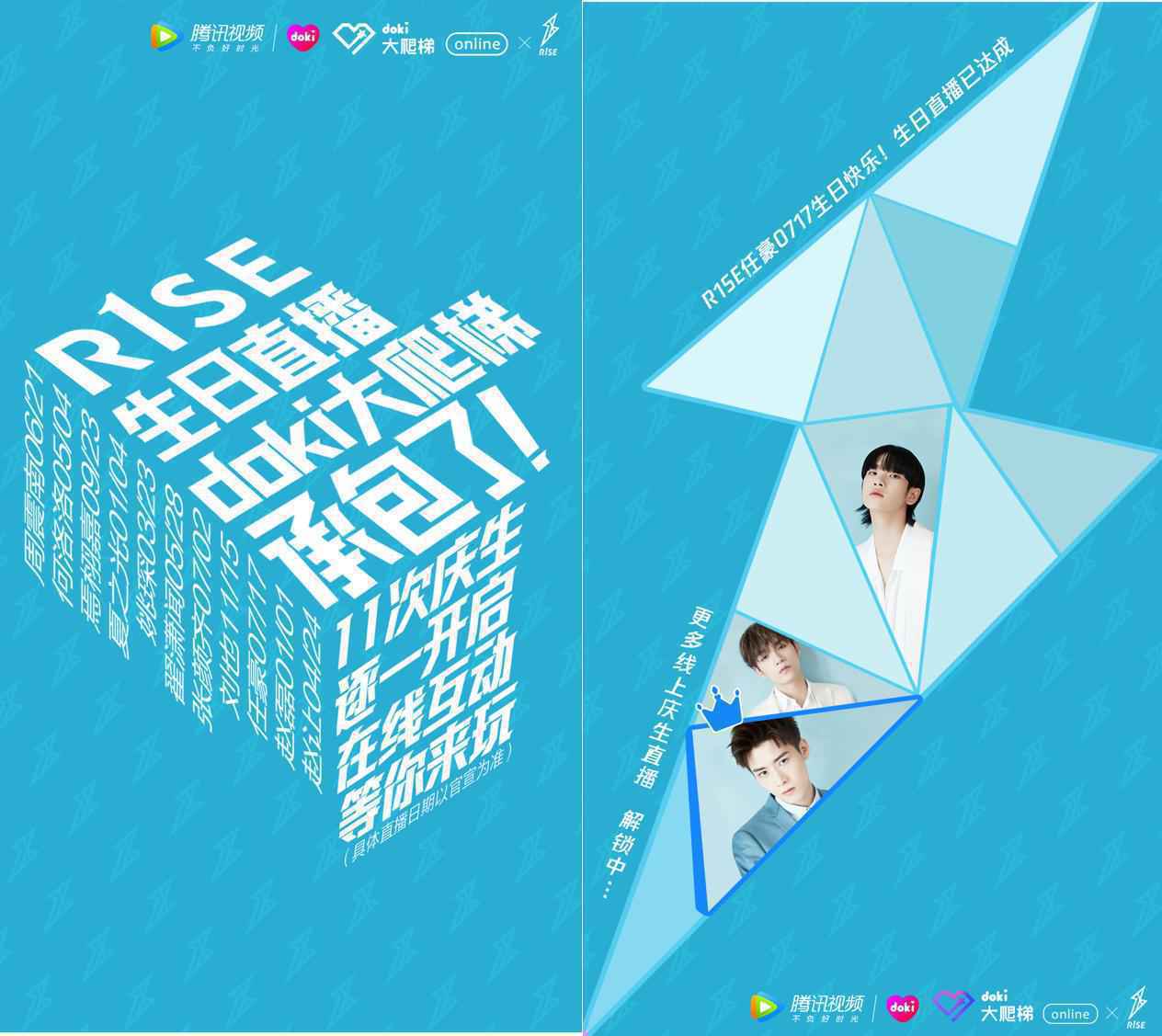 7月17日,R1SE成员任豪在doki举办生日直播。作为成团出道至今第三位过生日的成员,任豪在粉丝和R1SE成员们的祝福中,度过了自己的24岁生日。作为腾讯视频第一星粉互动社区,doki大爬梯online承包了R1SE全员的生日直播,即未来doki还会邀请其余8位小哥哥来陆续庆生。
