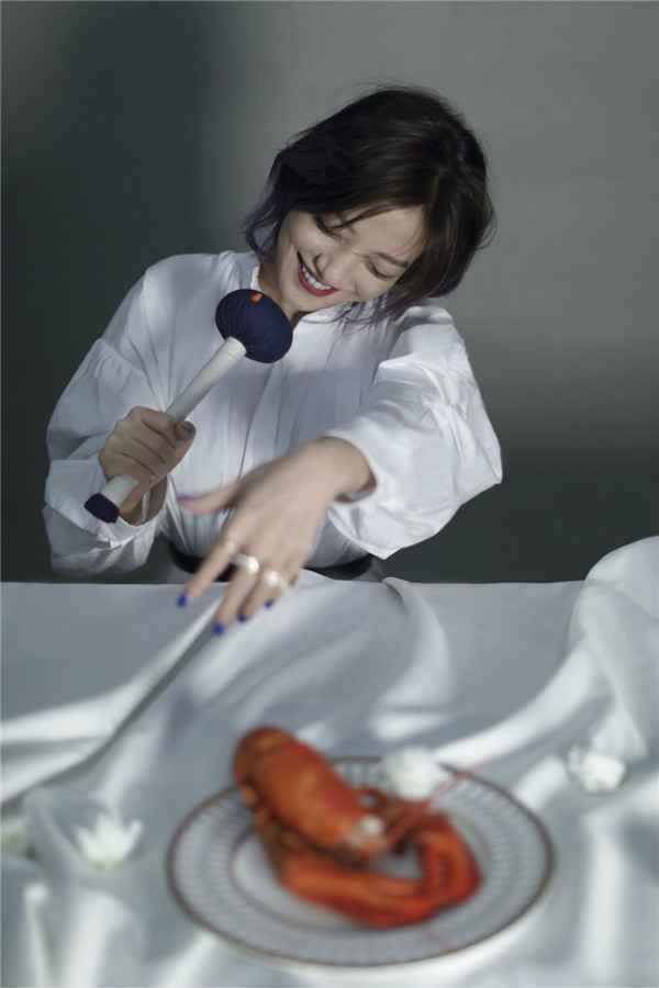大片中,赵薇流转于盛宴之间,以美食为单品大展时尚表现力。渐变蓝色蝴蝶发尾创意十足,更添一丝女性的妩媚。优雅大方的现代女性气质完美诠释明黄、深灰、黑白等多重色彩,奶油质感造型更显细腻温柔。