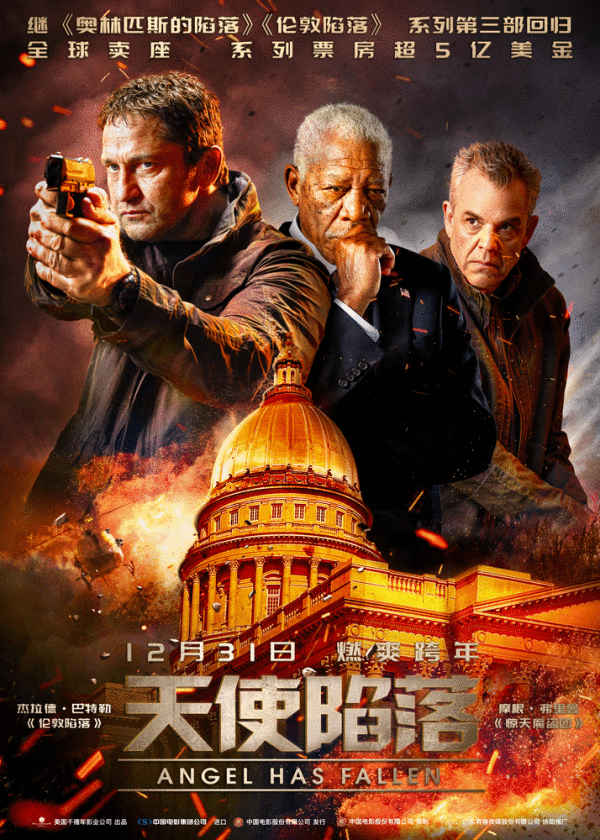电影《天使陷落》由美国千禧年影业公司出品、中国电影集团公司进口、中国电影股份有限公司发行、中国电影股份有限公司译制、广东昇格传媒股份有限公司协助推广。影片讲述硬核保镖迈克·班宁被构陷沦为通缉犯,曾经的英雄将如何脱离险境、保护总统,破解背后阴谋的故事。影片将于12月31日全国上映,打响2020年第一枪。